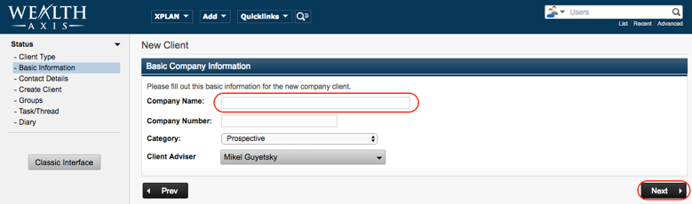 Client Management - Adding Clients: Company