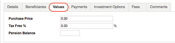 The Retirement page allows a user to record a client's retirement income information. A client's retirement income can be linked to one of their portfolio accounts. This allows the Market Value of the retirement income to be updated based on the values in the linked portfolio account.