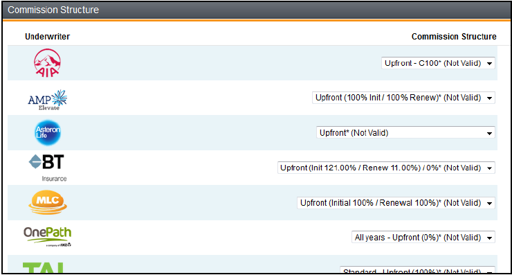 This panel is used to state the commission structure that will be applied for the recommended policies.