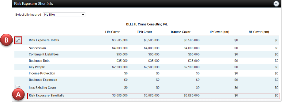 - Sum insured automatically populates based on the Risk Exposure Shortfalls. This can be edited if the recommended level of cover is different.