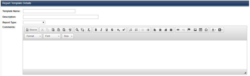 Report Type: Enter the Type of the template. This is an important field as it will enable different types of code to work in the template