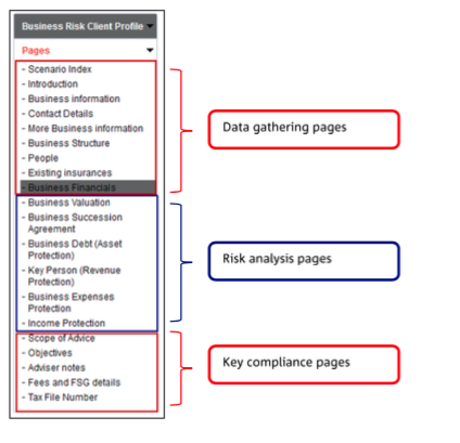 The Business Risk Fact Find wizard has 3 main components:
