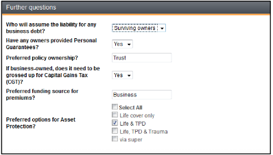 Goal: A range of business protection goals now display in the drop down list. Select the relevant goal. Note: The Goal and and Goal label fields automatically prepopulate.
