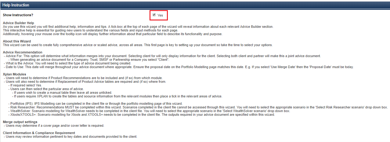 As you use any wizard you will find additional help, information and tips. A tick-box at the top of each page of the wizard will reveal information about each relevant section.