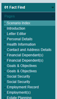 Once inside the wizard - to create a new Fact Find scenario, complete the following steps: