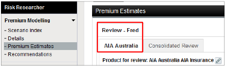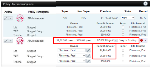 Premium Estimates > Review tab > Existing policy (in this case AIA Australia)