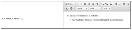 Note: Whether this 3rd item is required depends on whether the client is paying a fee for the advice. In the above example, the client is paying an ongoing service fee that includes advice, at a review, of their insurance and investment position.