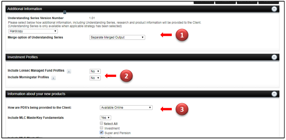 Note how the Understanding Series, Fund Profiles and PDS’s are to be provided to the client (if required).