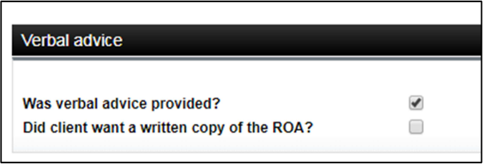 Important The Record of Advice (ROA) Licensee Standard and the ROA Guide provides guidance to advisers as to when an ROA can be used to document further advice to existing clients and what must be included in an ROA. This also includes when a verbal ROA and written ROA is to be used and what in timeframes these documents need to be executed and/or provided.