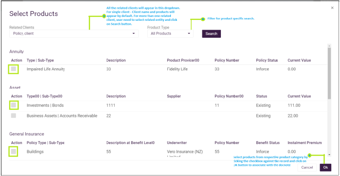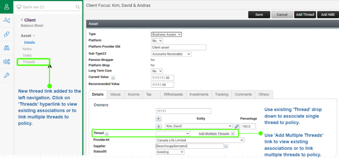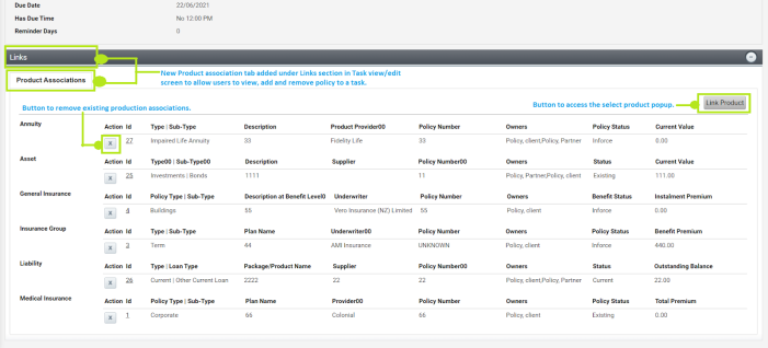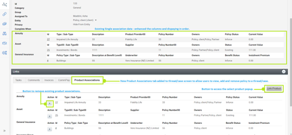 to improve the linking and unlinking of policies (Annuity, Asset, Liability,