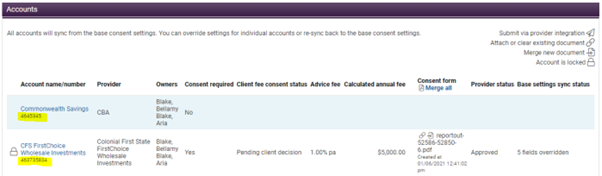 We've updated some account fields to sync data from the client’s base settings, even in scenarios where an account's core fee consent data is locked. The most common is where a decision is pending against a client, and a provider has not yet acknowledged the consent. In this case, there is still a need to update data that is not considered core to remain synced with base consent settings.