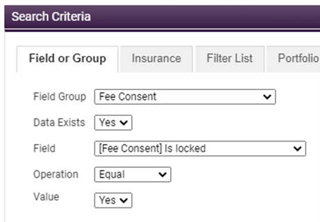 can now use the Advanced Search Criteria to search for fee consent accounts