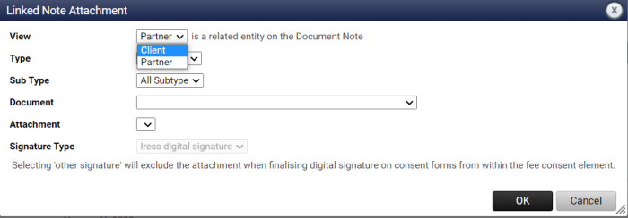 A new field Signature Type has been added to the Linked Note Attachment pop-up when linking a fee consent form from a note attachment. The default value is Iress digital signature (fee consent pdf for Iress digital signing) with any fee consent pdf for non-Xplan attachments linked as Other signature. Use of this field will be important when using the fully automated process (to be released), or if using Iress’ send to provider solution.