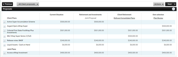 If you have multiple proposals for the Client only, All Client proposals can be selected and all plans will be included in all proposals for comparison purposes, with any Joint proposals, related to the client viewable in the Compare Proposals page.