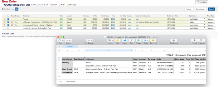 A new Compliance column has been added to the CSV export from the New Order screen that displays the breach level that has occurred against a specific order.