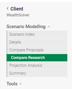 The Compare Research page is optional and can be disabled by going to WealthSolver > Settings > Interface > Compare Research Page.