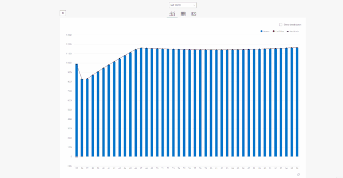 Cashflow Visualise is a new presentation layer that allows advisers to have a better conversation with their clients. It is meant to be simple in a modern interface, with enough functionality to make this interactive with the client. This is underpinned by the modelling calculations that our clients trust from Xtools+. There will be different visuals (charts, tables and infographics) that will match the adviser theming and best of all this will also look in a report exactly like it is on screen.