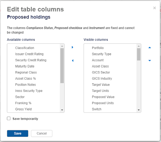 Xplan Portfolios Hub Bulk Rebalance - The display order will be applied to this table when the Asset Class column is dynamically grouped.