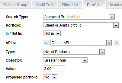 More than three products in a portfolio which are not in a specific (Licensee prescribed) APL