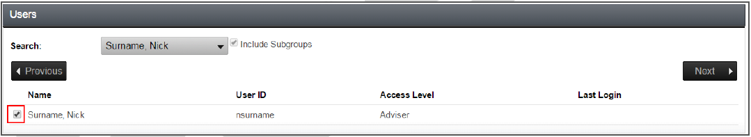 XPLAN contains a number of methods of displaying and searching user records. You can view a list of users which can be filter by group, access levels and status or you can use the XPLAN Quick Search to quickly find all users based on part of their name.