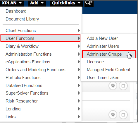 A user can also be created by click on the ‘XPLAN menu > User Functions > Add a New User’.