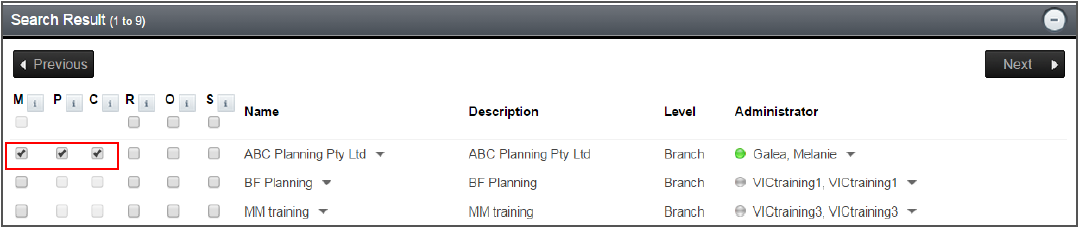 R column - user is visible to Referrers in this group. Visibility to referrers also depends on Adviser Selector Rules. To control which advisers a referrer can select for clients