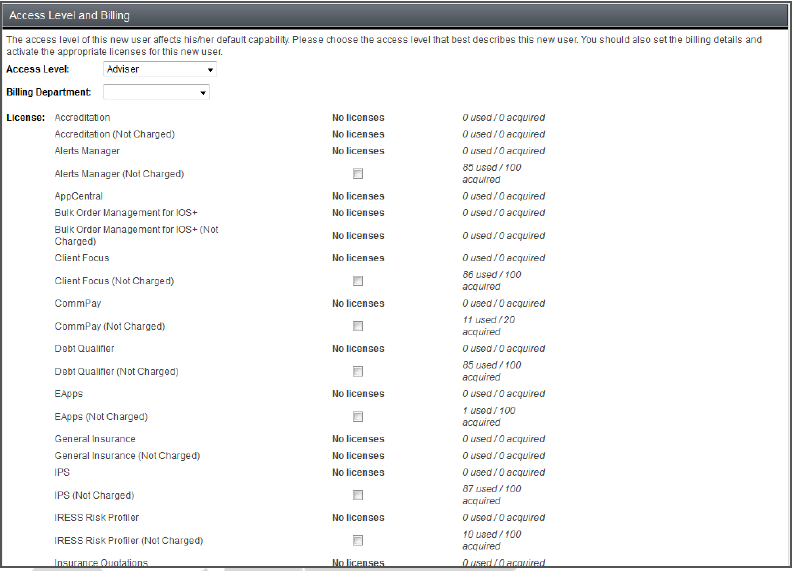 You may also be requested to choose a ‘Billing Department’ for the new user.