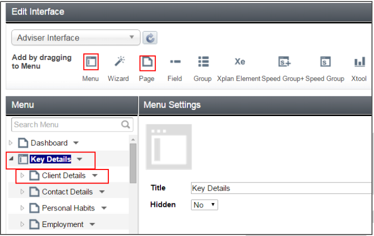 Select the Interface menu to be edited, for this scenario select ‘Adviser Interface’.