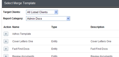 The Merge Report facility allows you to create templates with XPLAN coding (similar to the email templates above). Once created, templates can be sent to an individual client or you can send to many clients at a time.