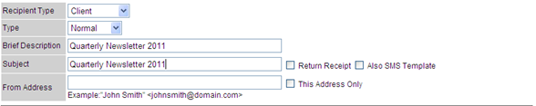 Give a Brief Description – This is for internal use and will allow other users to get an idea of what the template will be used for. We will call this template – ‘Quarterly Newsletter 2011’.
