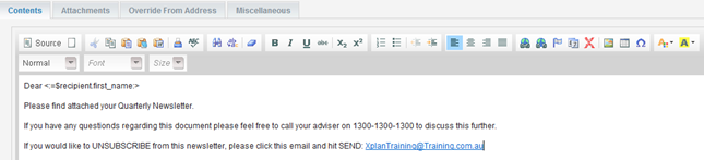 As this email template may be used as a bulk email we will be showing you how to use the software to put in an ‘Unsubscribe’ option for the recipients to use.