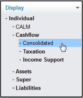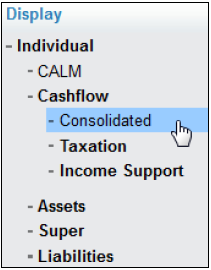 To see how this impacts both John and Mary’s cashflow, access the Display screen Individual/Cashflow/Consolidated: