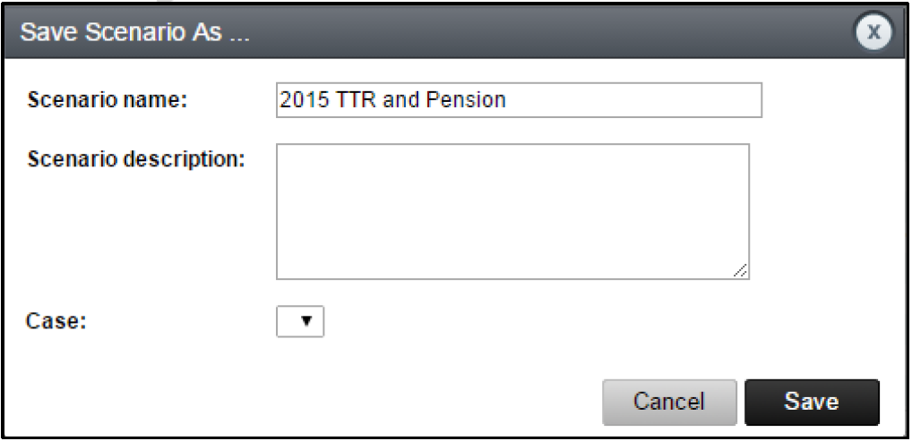 Creating TTR and Pension by clicking on the drop down arrow next to the scenario name, and selecting ‘Save As’ (as shown below) from the Display screen: