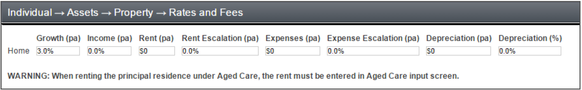 Ownership may be apportioned between client and partner for each property, and each property may be current, purchased now or in a future year. Principal residences may also be accounted for by identifying them as non-taxable property.