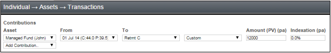 NOTE: If the client’s wished to drawdown the initial amount at a later time (i.e. the following year), under the ‘Commence’ column, you would select the appropriate year. Alternatively, you can enter the drawdown amount through the ‘Display’ screen.