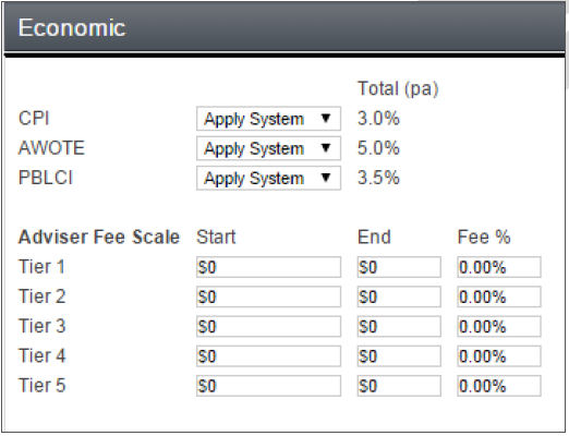 You can use the System Default assumptions (as defined by your System Administrator) for the ‘Growth’, ‘Income’ and ‘Franked’ rates for any Asset. Alternatively, you can enter your own Custom rates.