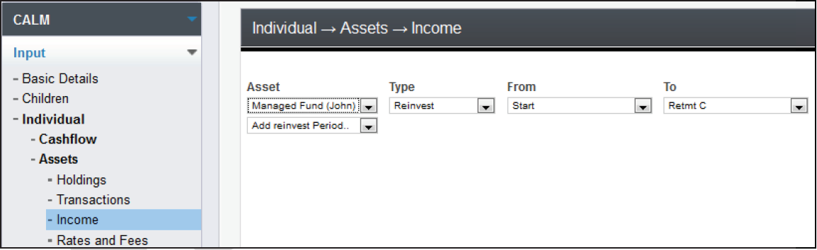 NOTE: The default option for all assets is ‘No Reinvestment’, therefore is it not necessary to list all assets and select ‘No Reinvestment’.