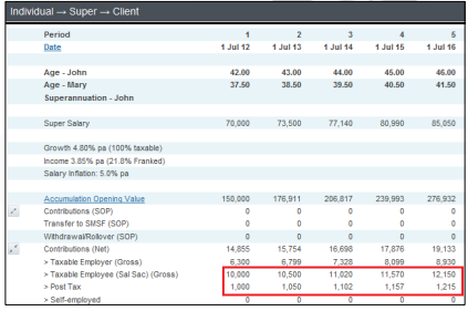 Individual/Cashflow/Consolidated:John and Mary wish to maximise from the tax concessions associated with super by Salary Sacrificing $10,000 (each) to their relative super funds