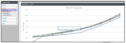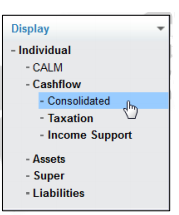 Note: You can compare different screens if you wish; the above comparison compares the CALM Display screen for both the Current Scenario and the Regular Savings Plan. If you wanted to compare the Cashflow/Consolidated screen between each scenario for instance, you would select the Cashflow/Consolidated screen and use the “Compare To” option as above.Objective: