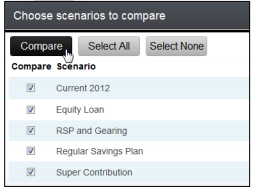 Then on the next screen, select which scenarios you would like to compare using the tick boxes and clicking