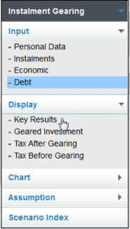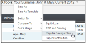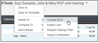 Alternatively, if you are in one of the other scenarios generated from the above exercises (i.e. RSP and Gearing); use the “Switch To” option from the Heading Drop Down Menu as shown below: