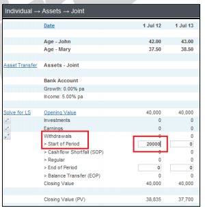 . To see how this impacts both John and Mary’s cashflow, access the Display screen